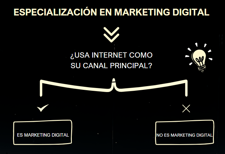 El marketing digital es multidisciplinario, abarcando una variedad de canales, habilidades y tácticas de marketing. El factor clave para determinar si debemos enfocarnos en un canal específico es si utiliza internet como medio principal. Si es así, estamos hablando de marketing digital.